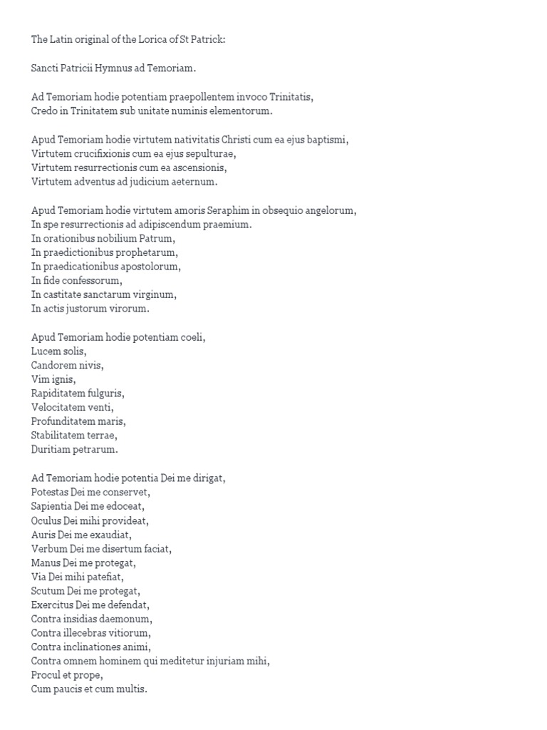 The prayer is known as faeth fiada or the lorica of st. Let us know what's wrong with this preview of st. Patrick, in your humility you called. Patrick's breastplate (also called the lorica, from the latin word for roman armor) is a prayer to take up arms in spiritual battle. Patrick's breastplate is a christian hymn whose original old irish lyrics were traditionally attributed to saint patrick and his irish ministry in the 5th century. 646 chord charts are collected for any of your needs. Patrick's breastplate is also known as the lorica. i arise today through a mighty strength, the invocation of the trinity, through… st. I apologise for the crudity of my pictures.i am going to get a high def camera to hopefully remedy that soon! Prayers to st patrick of ireland: This web page is also available as a podcast here. Holy face prayer for sinners (by st. Filmed on location in northern ireland featuring jean watson and cast members and crew from 'the game of thrones'. Patrick, was written in preparation for the triumph of the christian faith over paganism in ireland, which was finally accomplished through the prayer and work of st.